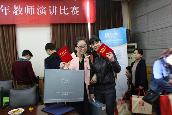 青年教师的演讲围绕“生物”、“检验”展开,每位选手都精心准备了一个小的知识点,把在场的人员当作自己的学生,生动而充满热情的完成了各自的演讲。经过激烈的角逐和评委的认真打分,共评选出一等奖2人,二等奖3人,三等奖4人及优胜奖。各位专家评委对每位选手的表现都做了深刻的点评,这也是此次演讲比赛最为受益的地方。最后,专家评委给获奖者颁发了荣誉证书和礼品,并对生之源的大力赞助表示感谢。