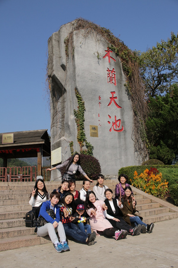 早上七点半,带好了一大堆事先准备好的零食,坐上私家车,出发了。历经两个半小时的车程终于到达了旅游景点木兰天池风景区,在大门口,“木兰天池”石碑前,我们兴奋的来了张集体照,沐浴在阳光中,大家笑的开怀……