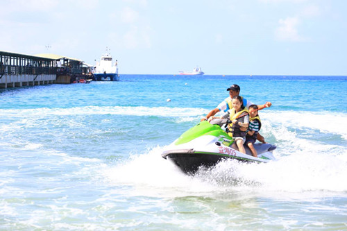 海南,是的,我是一位追求温柔大方的女子,并且恰好也喜欢冲浪的感觉。儿子,你自己抓稳了,我现在顾不上你