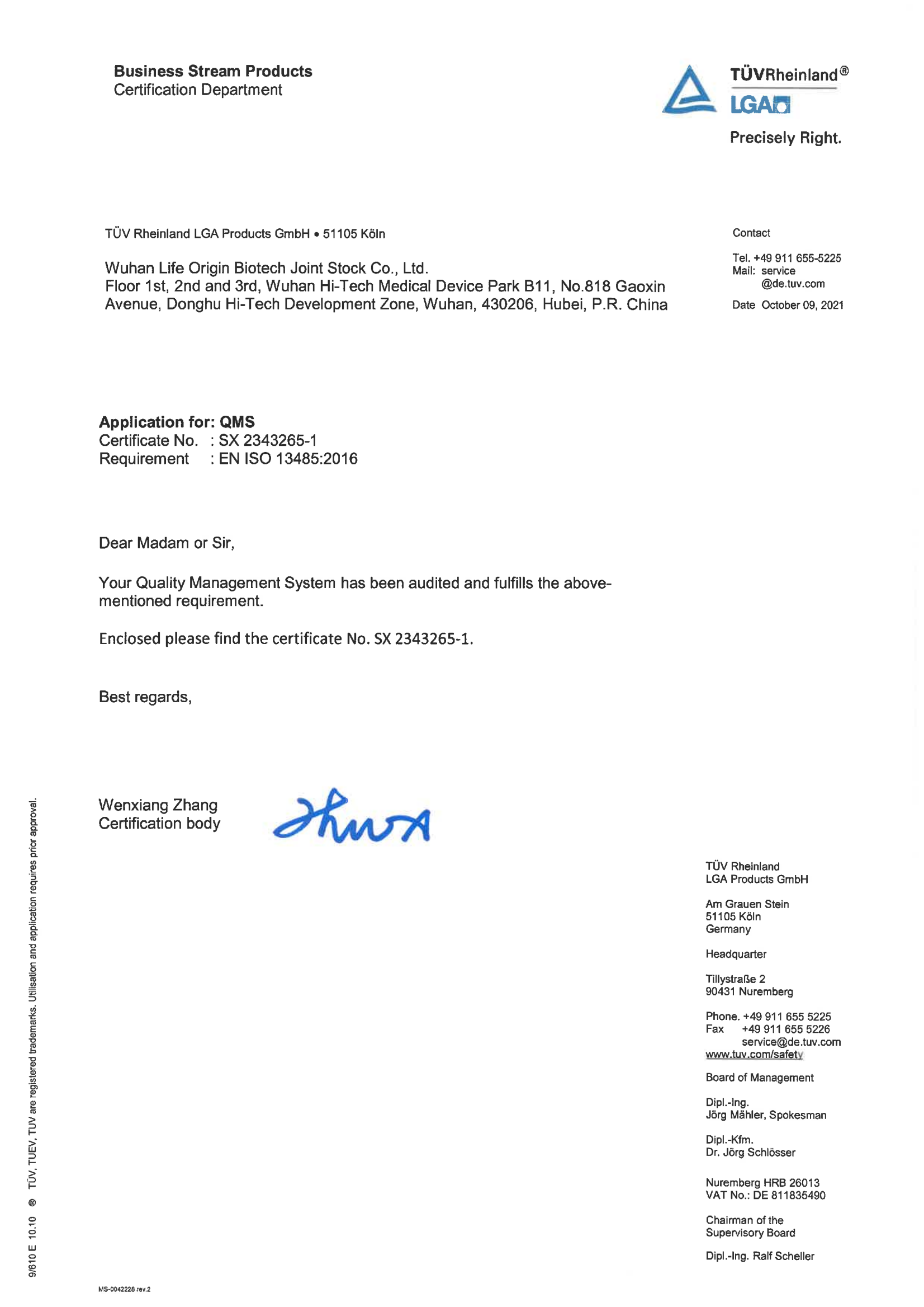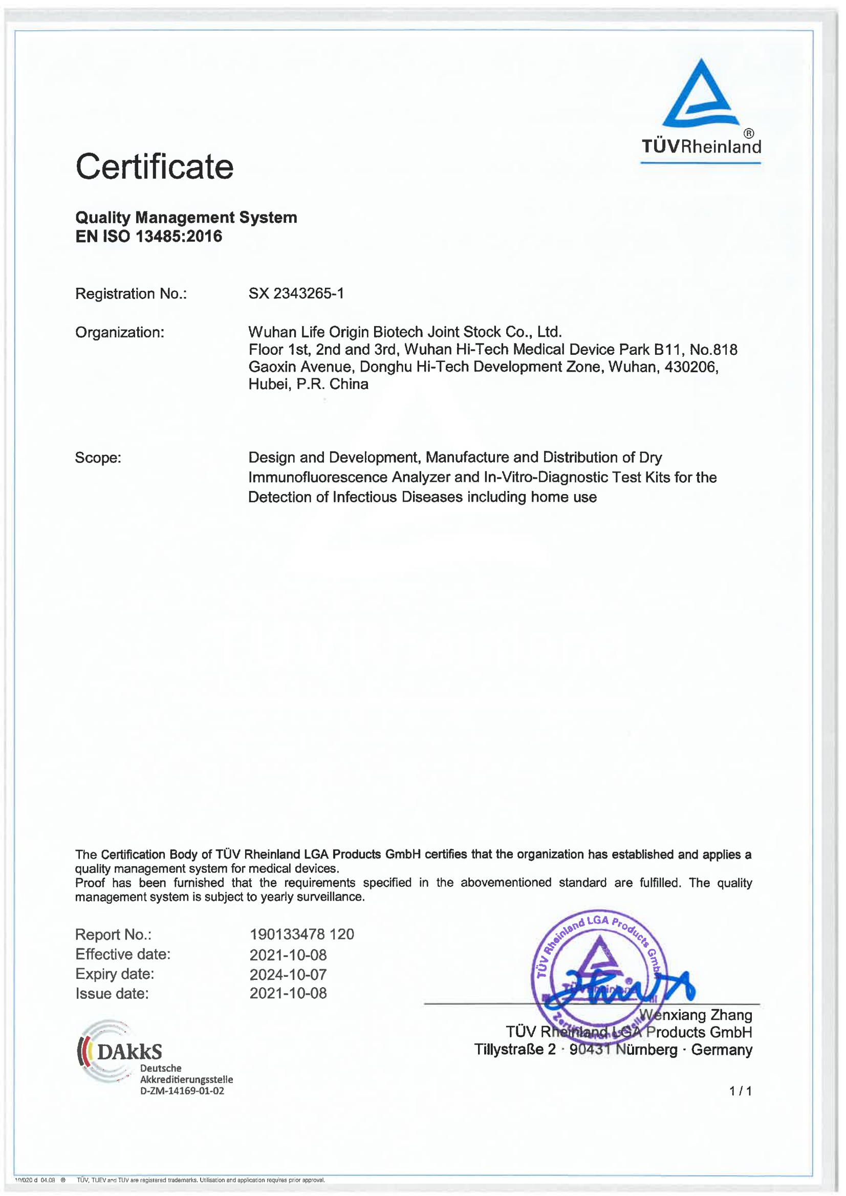 生之源生物科技股份有限公司于近日顺利获得德国南德意志集团 (TÜV SÜD)EN ISO13485:2016的现场认证审核,已收到证书。为生之源打造全球诊断检验服务提供有力的帮助!