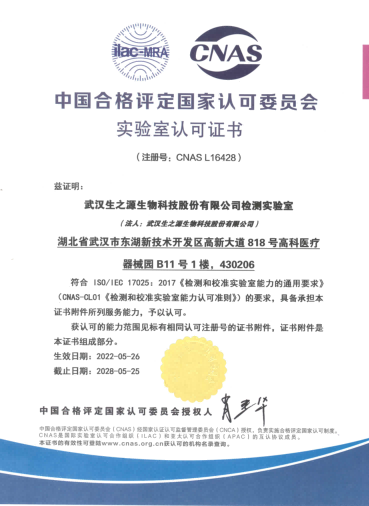 喜报!武汉生之源生物科技股份有限公司检测实验室取得CNAS认可证书